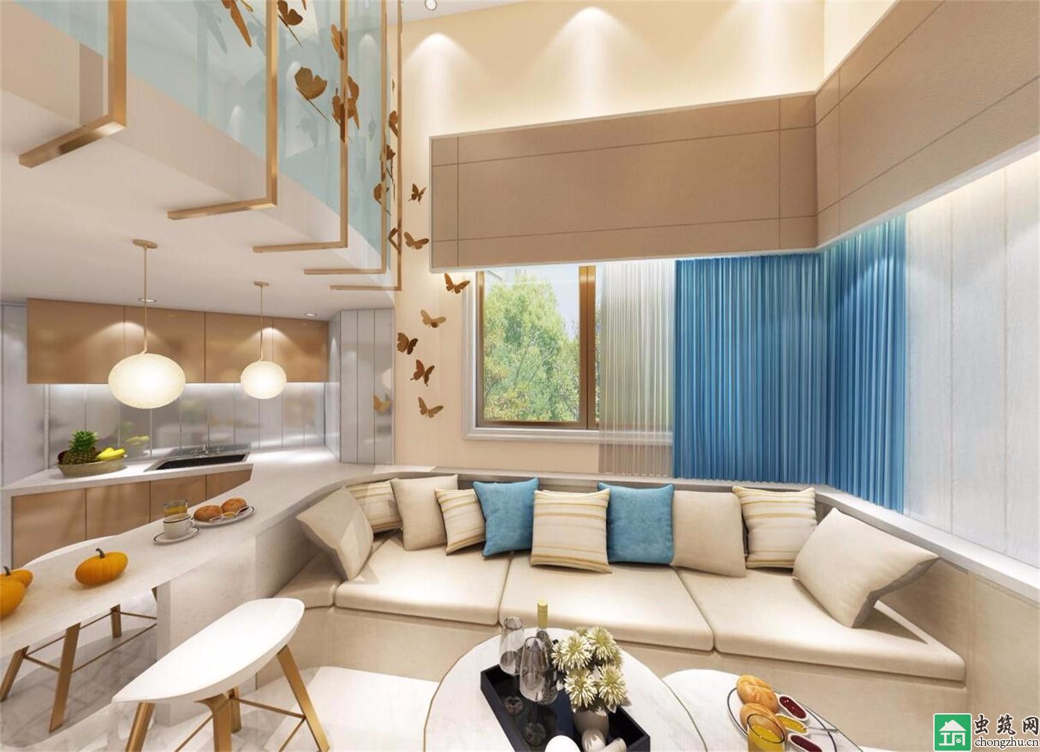 SOHO:不必在被窩掙扎著起與不起,不必在地鐵上貼煎餅,不必吃難吃的外賣盒飯,累了還能直接往床上一歪….年輕人工作也不忘了追求自由、舒適、浪漫。在僅僅只有50平方超小超高樓新戶型中為主人家打一個精致居家辦公環境,一樓接待二樓美容。