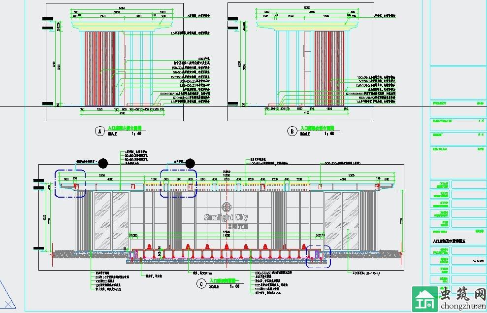 現代感的圖紙住宅入口設計,花崗巖的墻體材質,與整個建筑的小區風格相符,并體現出現代、尊貴的整體感