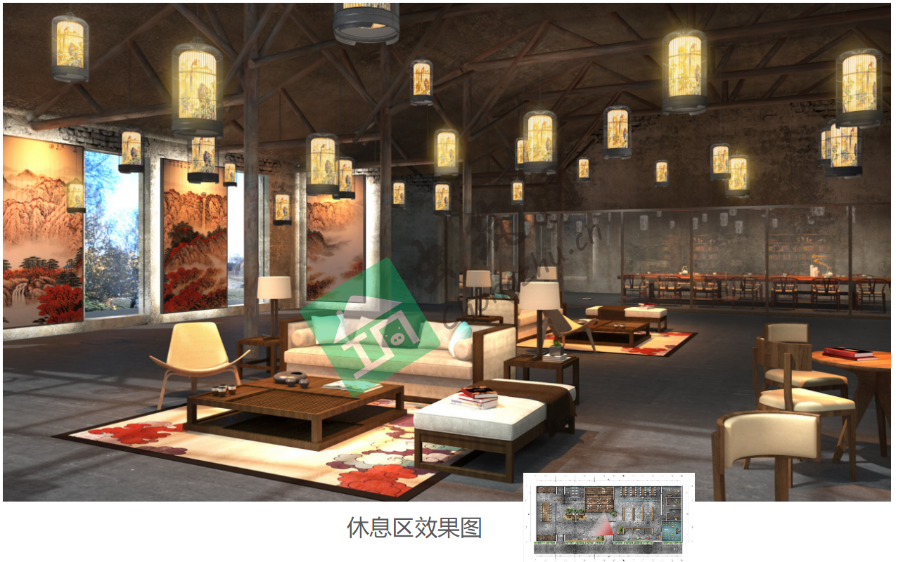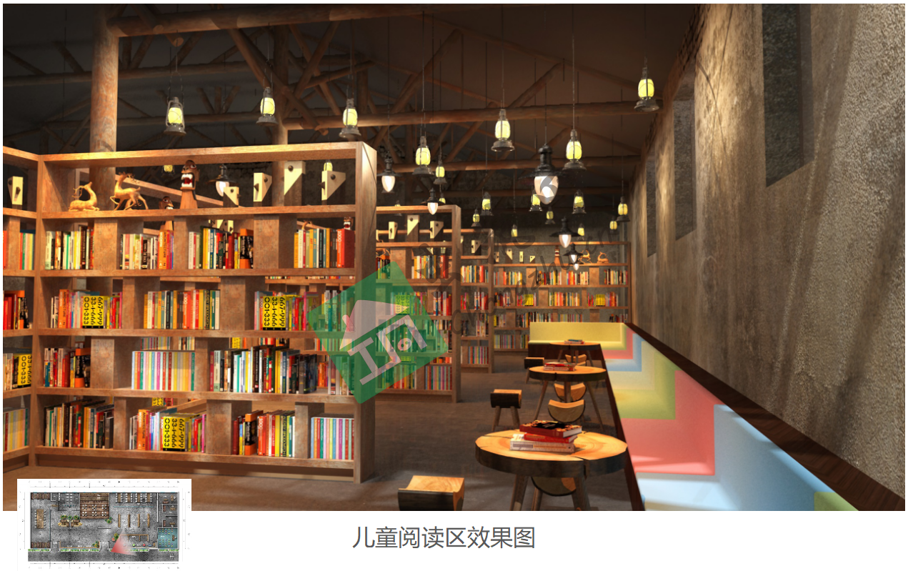? ? ? 遵循環保設計理念為前提,保留原有建筑的基礎上,增加裸磚墻、鐵藝、皮質元素、做舊元素等形成極具特色工業風,渲染圖書館的歷史感,體現了勞動人民的智慧,并將“糧食”的延續。福澤主城普通市民、中小學生、文學愛好者、外地游客等。? ? ? ? ? ? ? ?e.景觀:圖書館主入口,用綠植造景;室內書架處、書桌上增加大量綠植盆景;